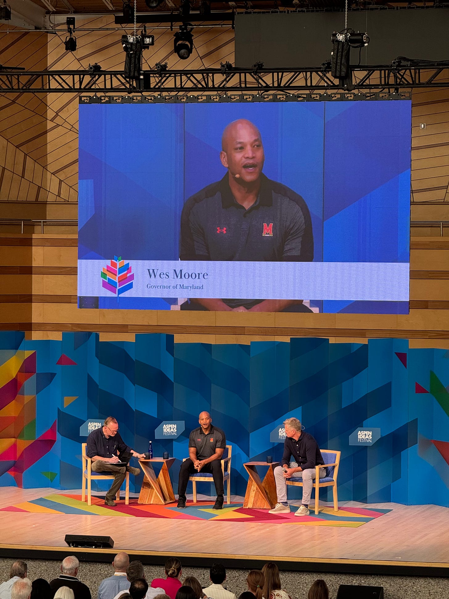 Once the shock of the turbulent flight (and traveling over halfway across the country for hours with no wifi, Thanks, United!) wore off, I quickly changed clothes and headed to the festival for opening sessions. I was pleasantly surprised by the range and depth of topics covered, as well as the thoughtful planning. My favorite session of the week was a fireside chat on leadership featuring Maryland Governor Wes Moore and Golden State Warriors Coach Steve Kerr. CBS Evening News Co-Anchor John Dickerson moderated the conversation.
